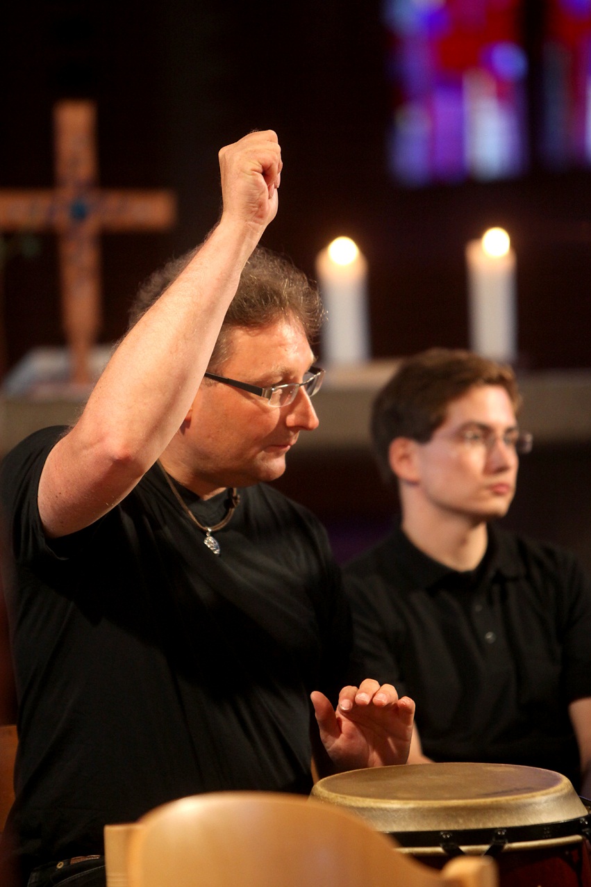 … mit viel Rhythmus, der fasziniert und die ganze Kirche füllt.