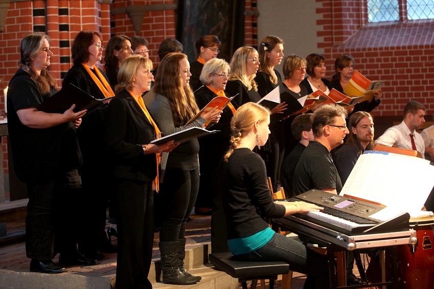 Nach und nach kommen alle Konzertbesucher vom Markt an der Kirche an und …