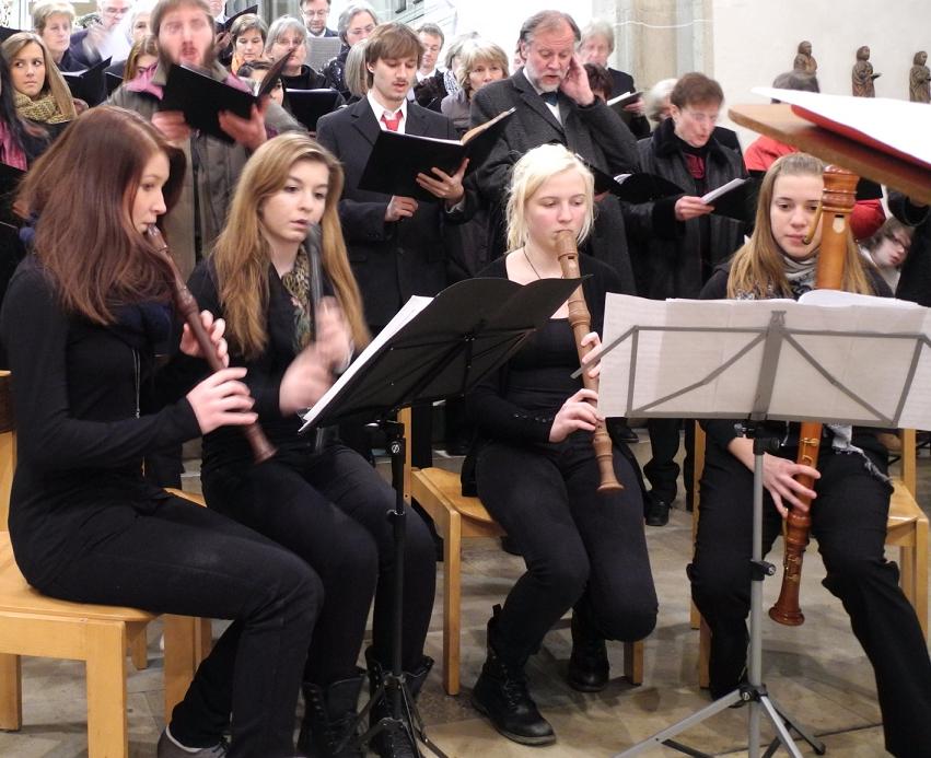 Das Blockflötenquartett der Musikschule Steinlach unter der Leitung von Christina Rettich erntet spontanen Applaus für die gefühlvolle sowie präzise Präsentation frühbarocker Musik.