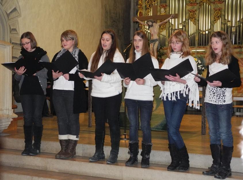 In sauberer Intonation bringt der Jugendchor der Kirchengemeinde Werke von John Rutter zu Gehör. Geleitet wird der Jugendchor von Ruth Löw.