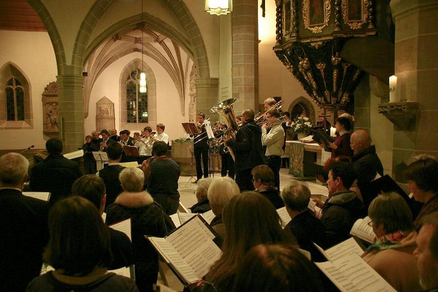 Zum 37. Konzert von „366+1, Kirche klingt 2012“ füllt die Johanneskantorei Leonberg zusammen mit Blechbläsern stimmlich und klanglich die Leonberger Stadtkirche.