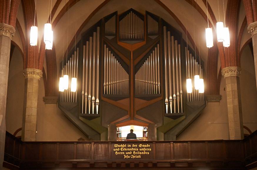 Als Mittelteil der Triptychen hört die Konzertgemeinde jeweils Bearbeitungen zum Leit-Lied der Woche „Tochter Zion, freue dich“. Zu Beginn erklingt die Fuge von Helmut Walcha (1907 – 1991), am Ende das Choralvorspiel von Paul Eberhard Kreisel (1931 – 2011)