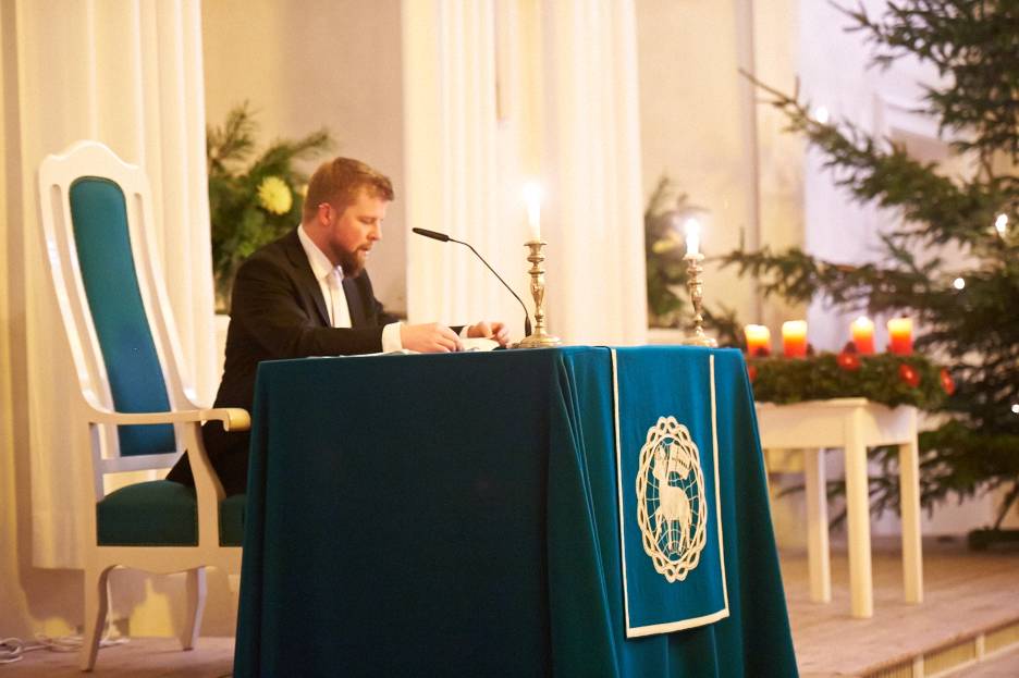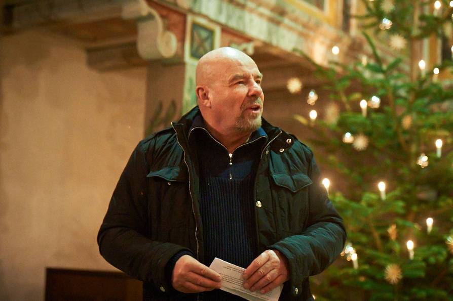 Liturg Olaf Nippe liest die Weihnachtsgeschichte aus dem Lukas-Evangelium und die Prophetien des Jesaja
