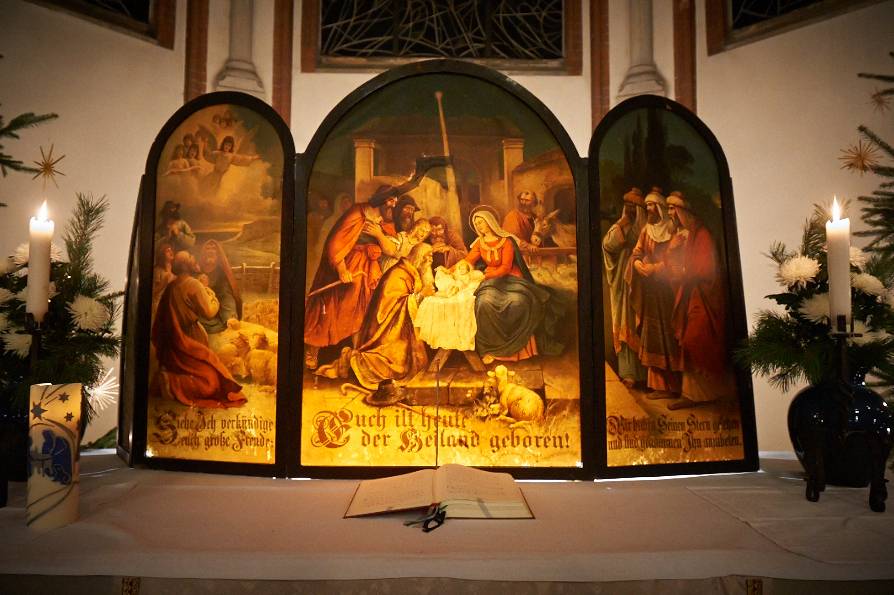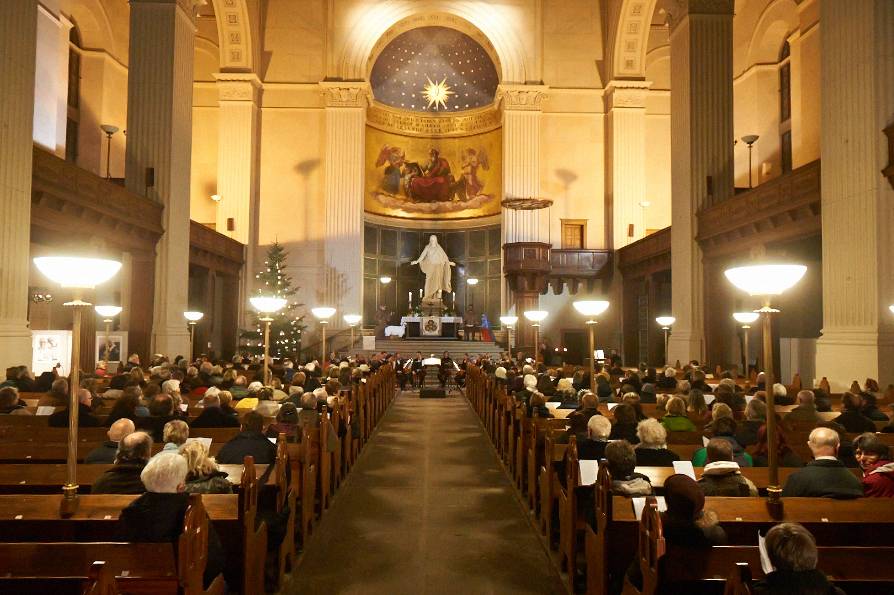 Von der Empore erklingt die Kantorei mit weihnachtlich leuchtendem Chorklang