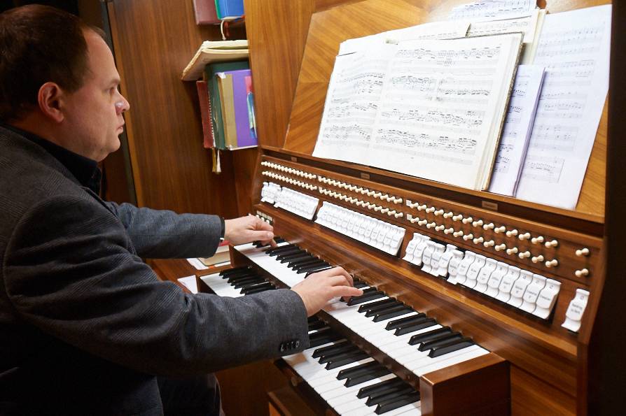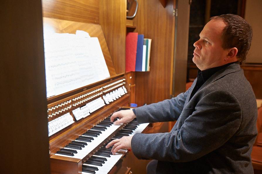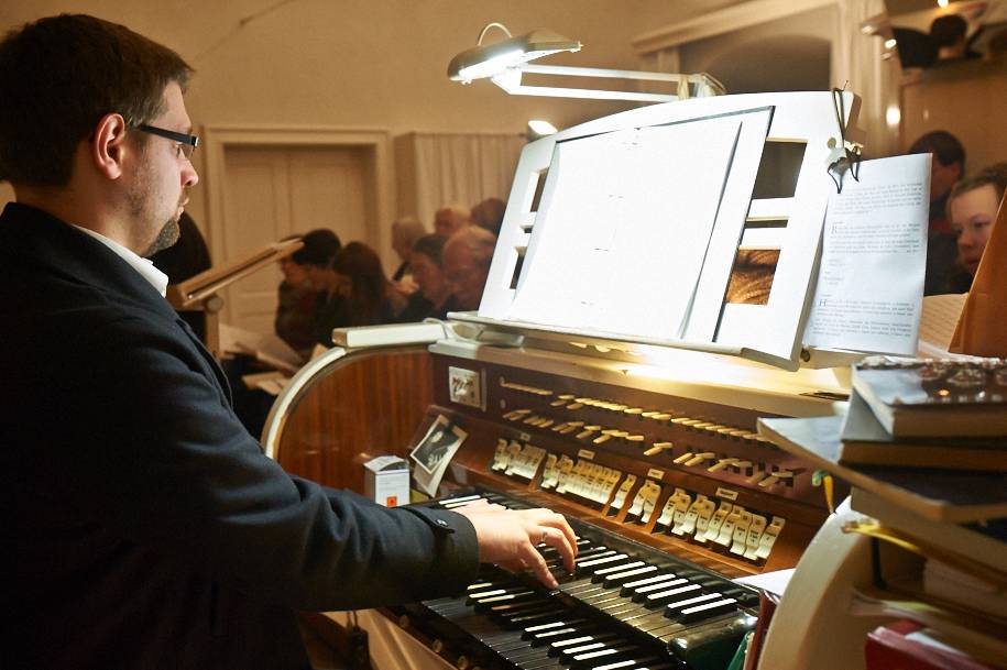 Dr. Wolfram Hoppe unterstützt das Collegium musicum Zittau an der Orgel