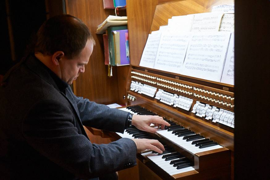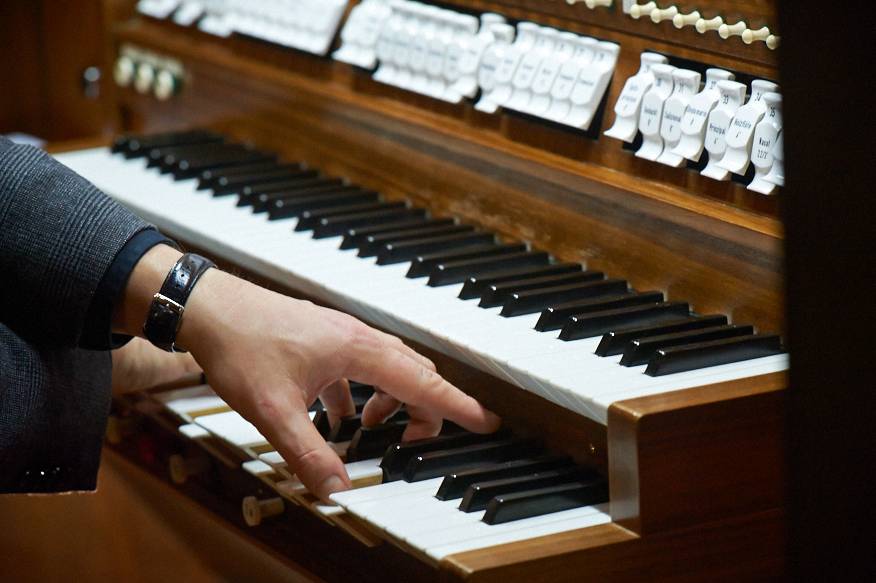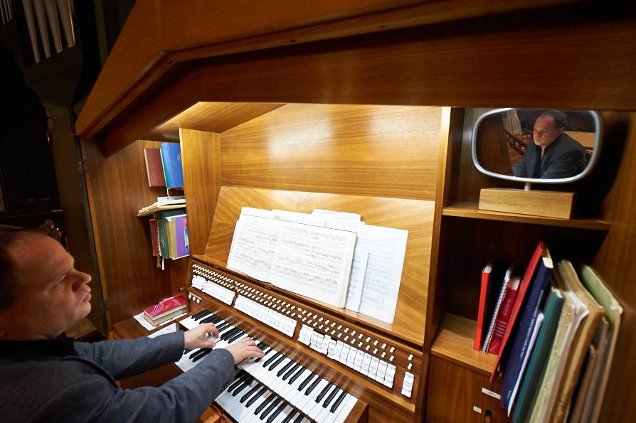 Facettenreich und mit großer dynamischer Bandbreite spielt KMD Matthias Pfund den Festhymnus „Tochter Zion, freue dich“ von Max Gulbins (1862 – 1932)