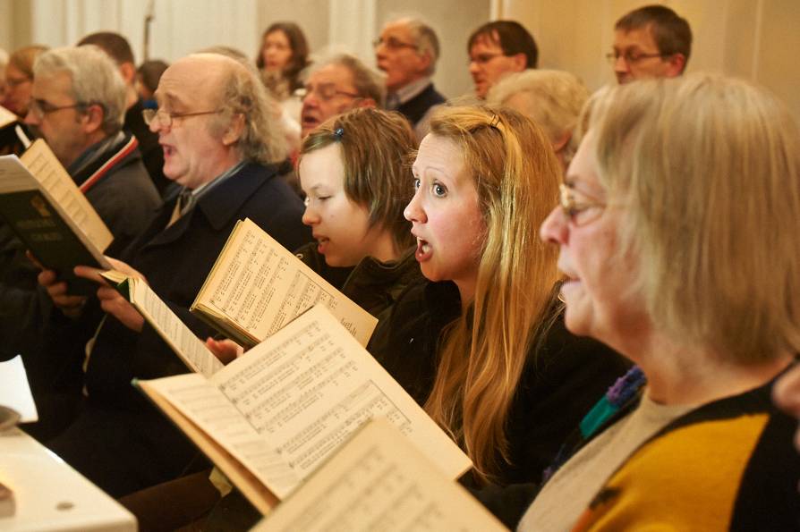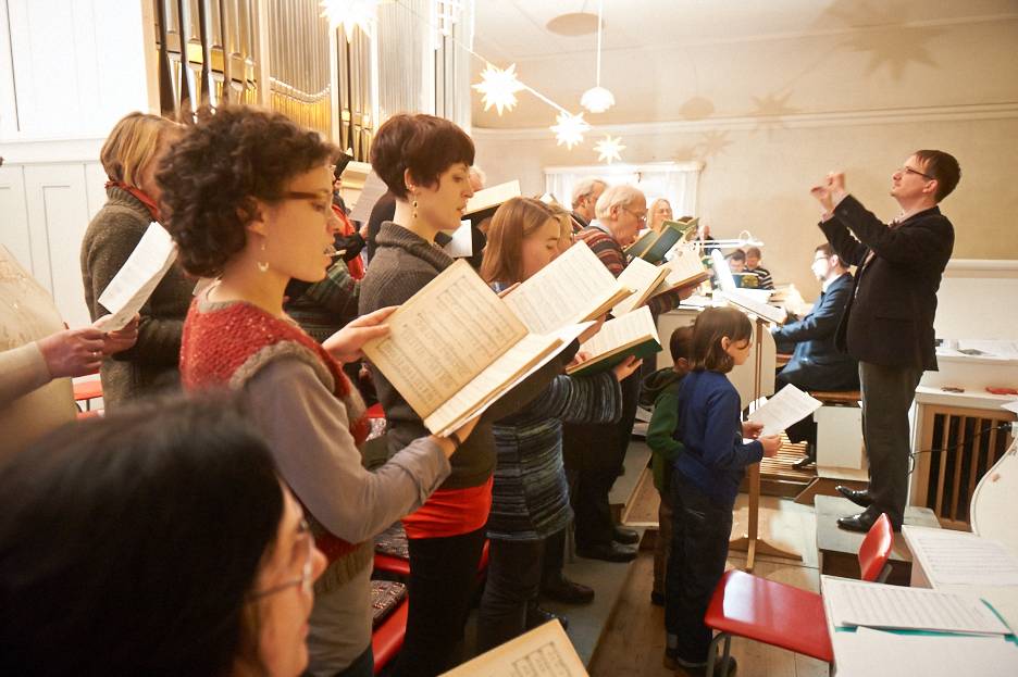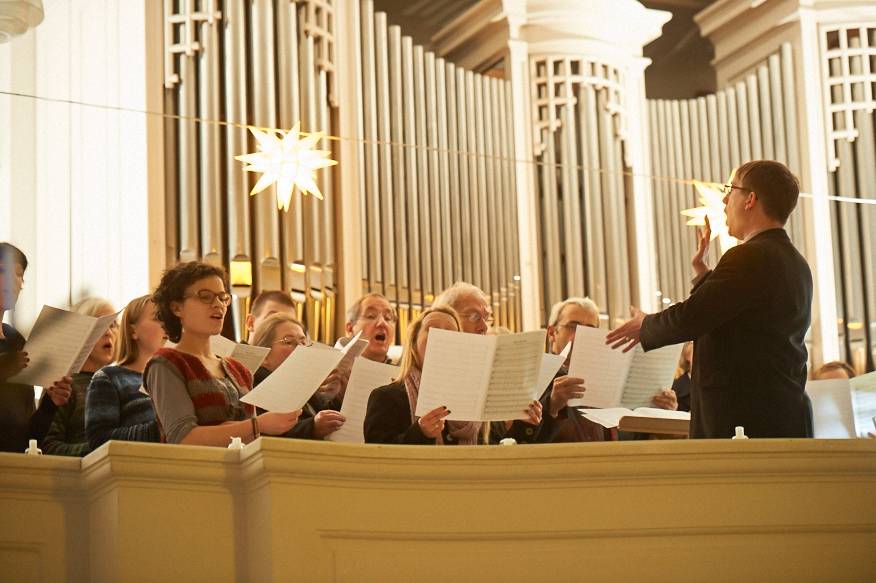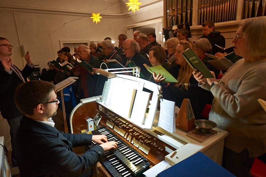 „Freut euch, ihr lieben Christen“ – der Kirchenchor singt im Wechsel und mit Unterstützung der Orgel das Lied von Leonhart Schröder