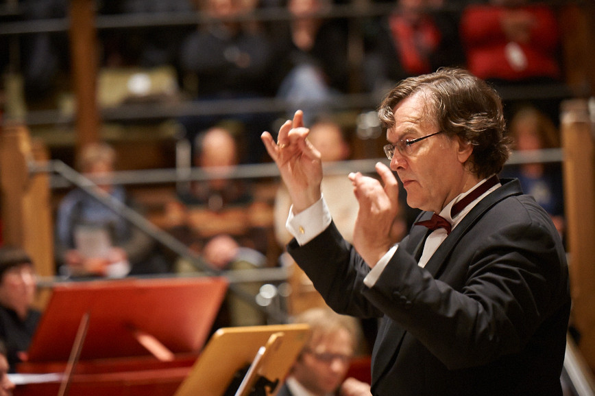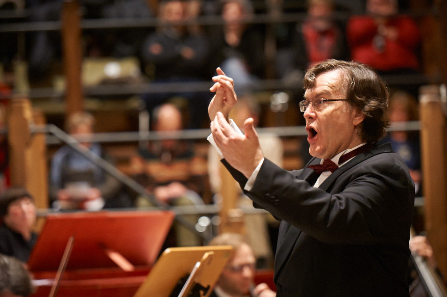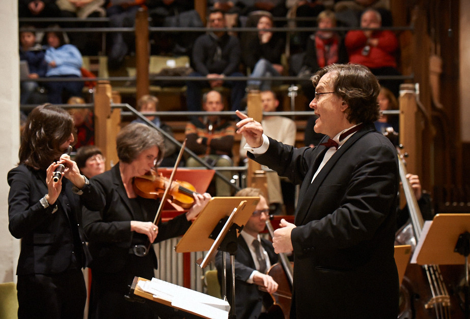 Thomaskantor Prof. Georg Christoph Biller dirigiert zu Beginn des Konzertabends „Wie soll ich dich empfangen“ von Johann Sebastian Bach (1685 – 1750), Melodie: Hans Leo Haßler (1564 – 1612)