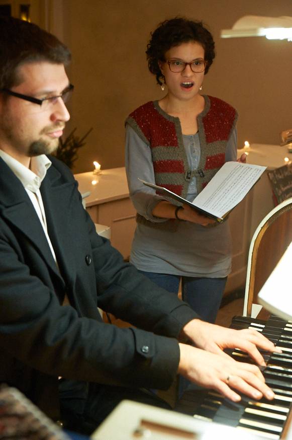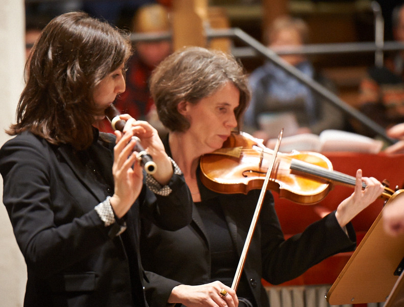 Dóra Ombódi spielt die Flöte, Konstanze Beyer die Violine