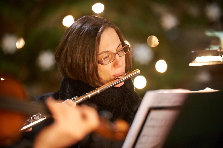Im Anschluss erklingt die Choralkantate „Von guten Mächten treu und still umgeben“ op. 7 (1965) für Soli, Streicher, Querflöte und konzertierende Orgel von Neithard Bethke. An der Querflöte: Letizia Turini