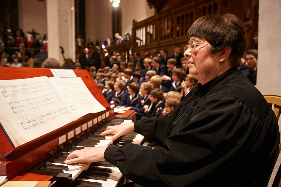 Almuth Reuther begleitet den Chor an der Continuo-Orgel