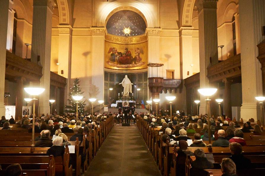 Unter der 1887 erstellten Kopie des segnenden Christus von Bertel Thorvaldsen (1770 – 1844) spendet Pfarrer Christoph Stempel der Konzertgemeinde den Segen für das neue Jahr