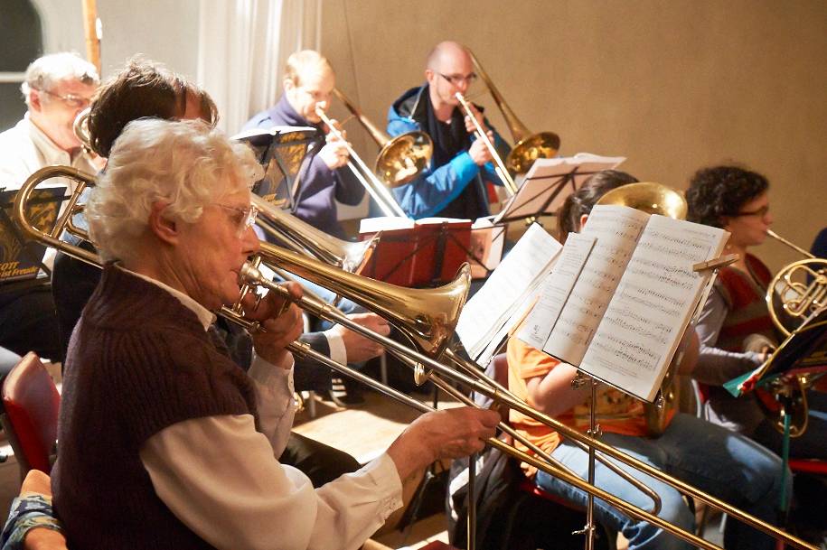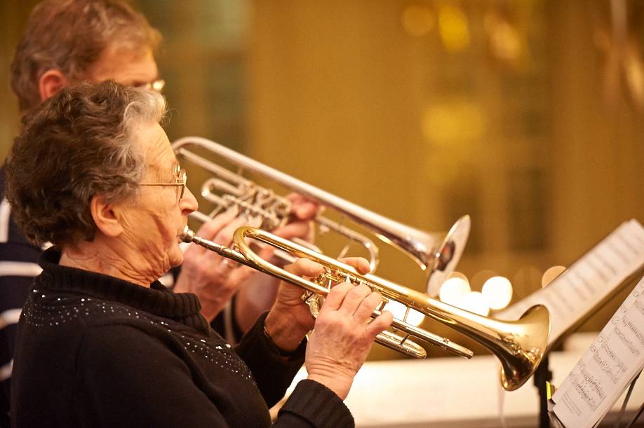 Dorothea Burckhardt leitet den Herrnhuter Bläserchor, der sowohl die Choräle begleitet als auch mit eigenen Interpretationen aufwartet – hier mit einem Larghetto von Georg Friedrich Händel (1685 – 1759)