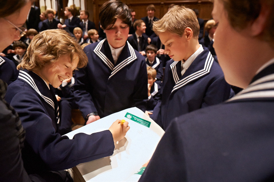 Man sieht es ihnen nicht wirklich an: die „Thomaner“ feiern im zu Ende gehenden Jahr ihren 800. Geburtstag. Diesen Abend gestalten sie mit Werken von Thomaskantoren, so „Wohlauf mit hellem Ton“ von Kurt Thomas (1904 – 1973, Thomaskantor 1957 – 1960)